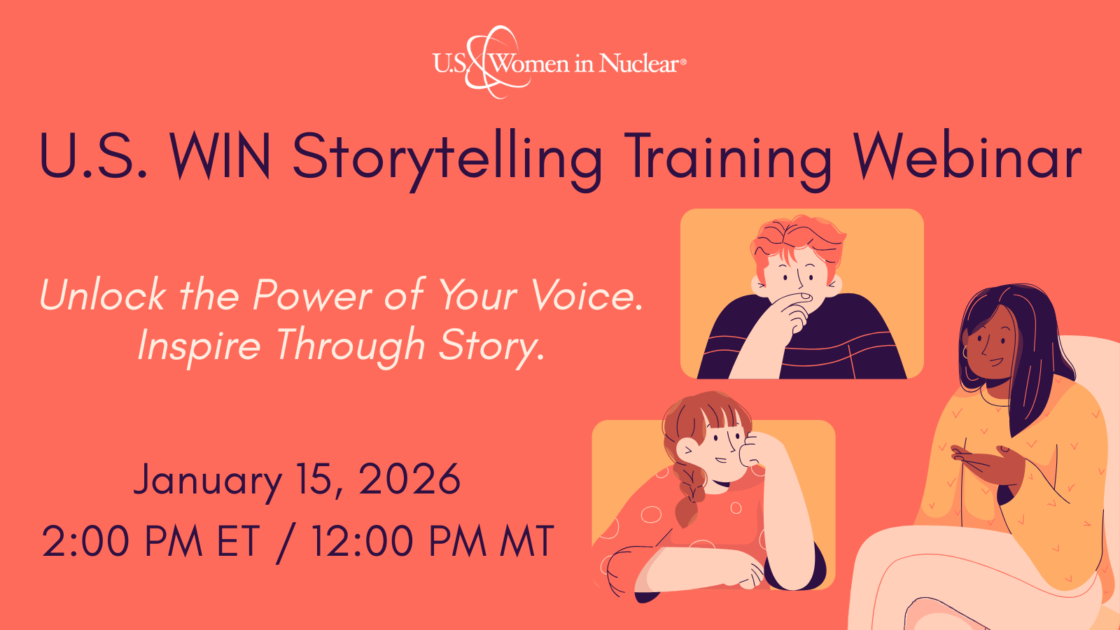 Join us on January 15, 2026 for the 2025 U.S. WIN Outreach Webinar. This year’s topic is Unlock the Power of Your Voice. Inspire through Story. Registration link to come soon.